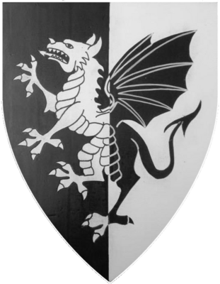 - Registered Badge: (Fieldless) On a triskelion of dragon's heads argent a pellet.